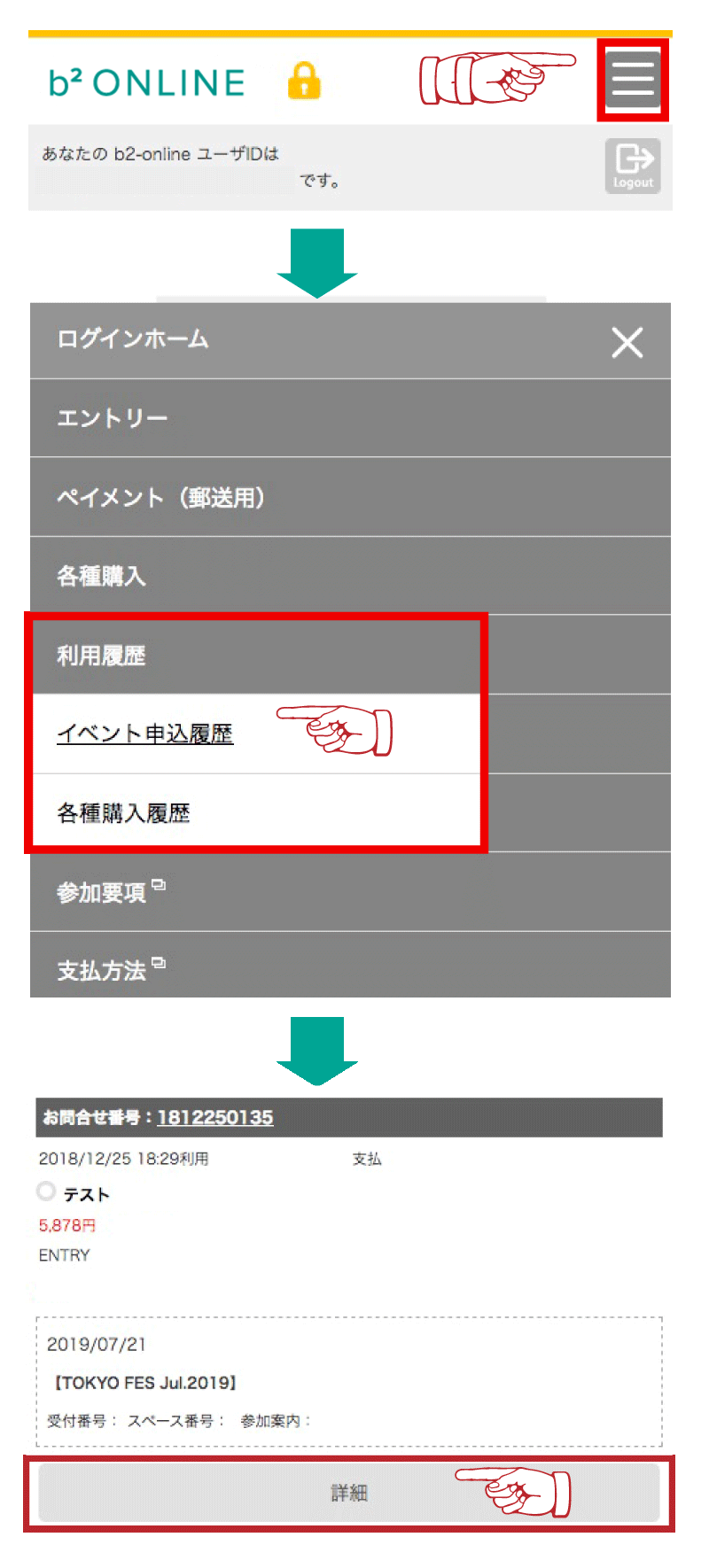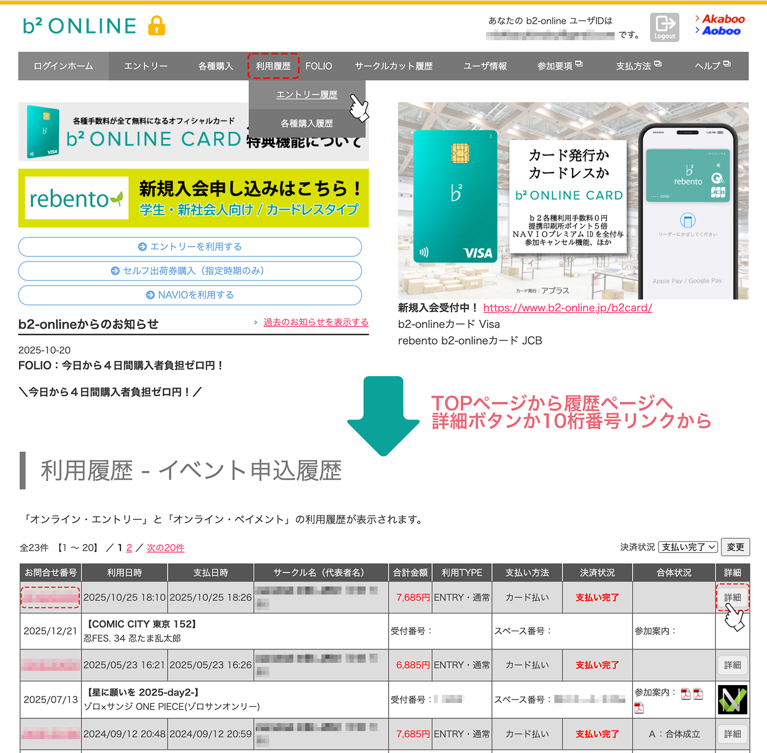 <推奨>時期を問わず、エントリー完了(支払い状況不問)されたら、一旦TOP画面に戻って履歴詳細から申し込みされた入力内容に間違いがないかをしっかりとお確かめください。