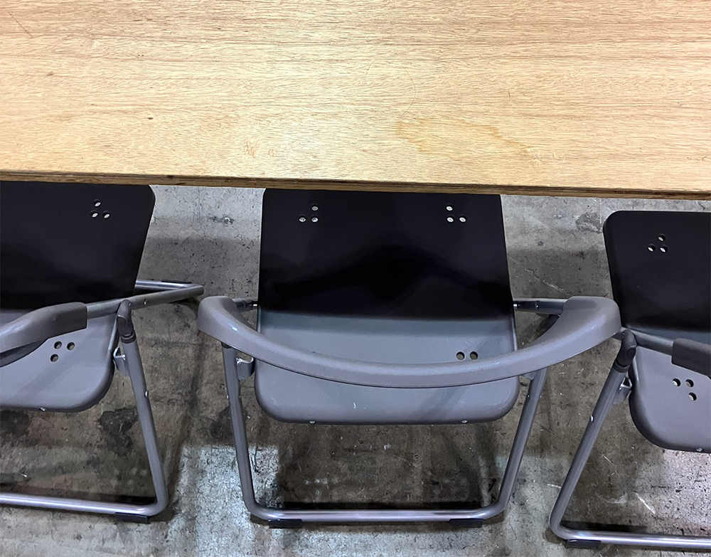 イスは折り畳まずそのままで。机に立てかけないでください。机に載せる必要もありません。