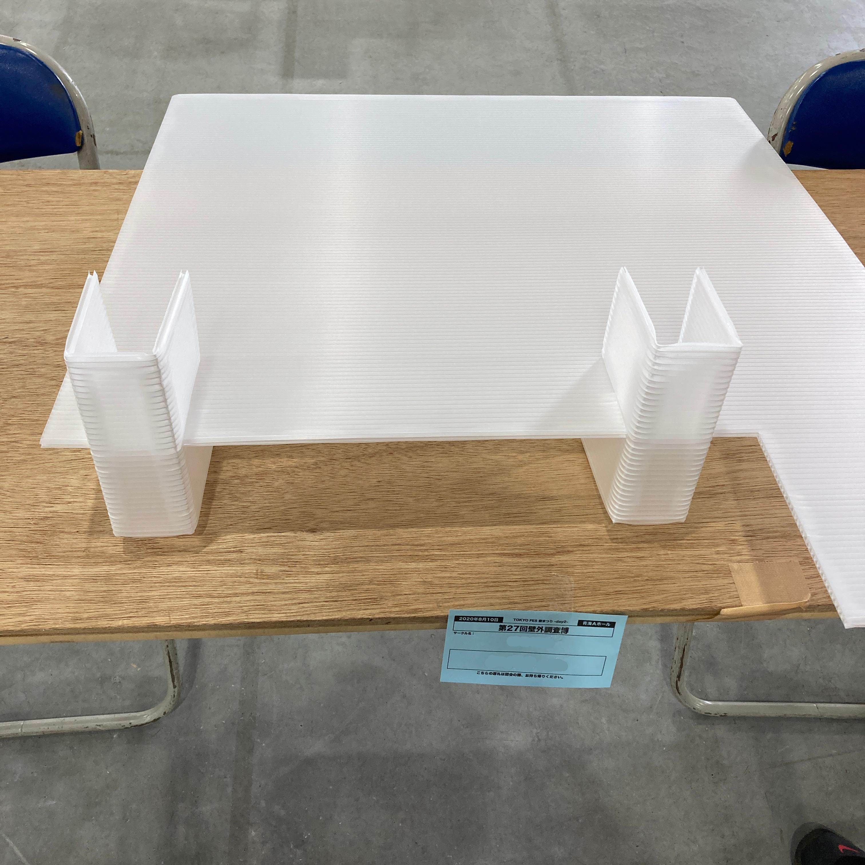 *1卓につき1-2枚組み立てキットを配布します。該当スペースの方は組み立て(簡単)し設置をお願いします。>>