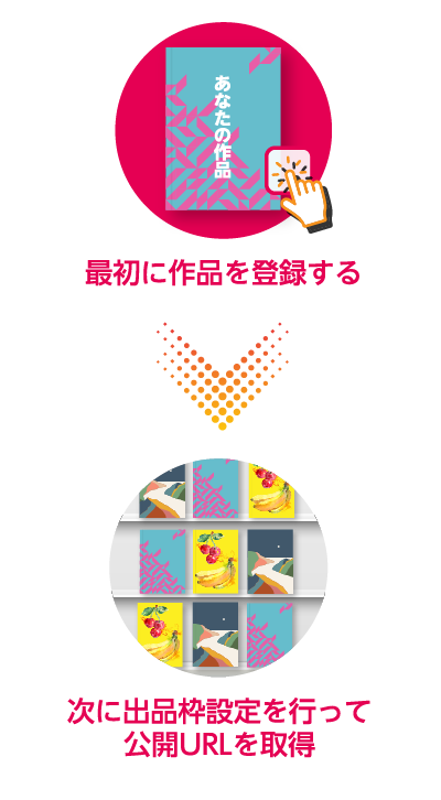 まず最初に、頒布を希望する作品のタイトルや価格、画像情報等を登録してください。作品は最大同時10点まで登録することが可能です。