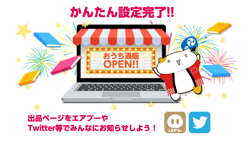 「出品枠」の設定が完了すると、各出品枠ごとに専用のURLを持った頒布用WEBページが生成されます。こちらのページを♯エアブーやTwetter等を活用してPRし、おうち通販を開始してください。