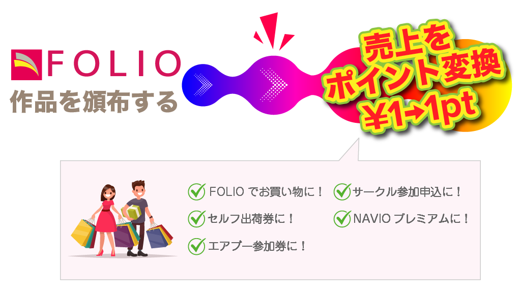 銀行振込手数料等を気にせずにFOLIOでのお買い物や、サークル参加、セルフ出荷券など、さまざまな決済に効率よく活用できます。