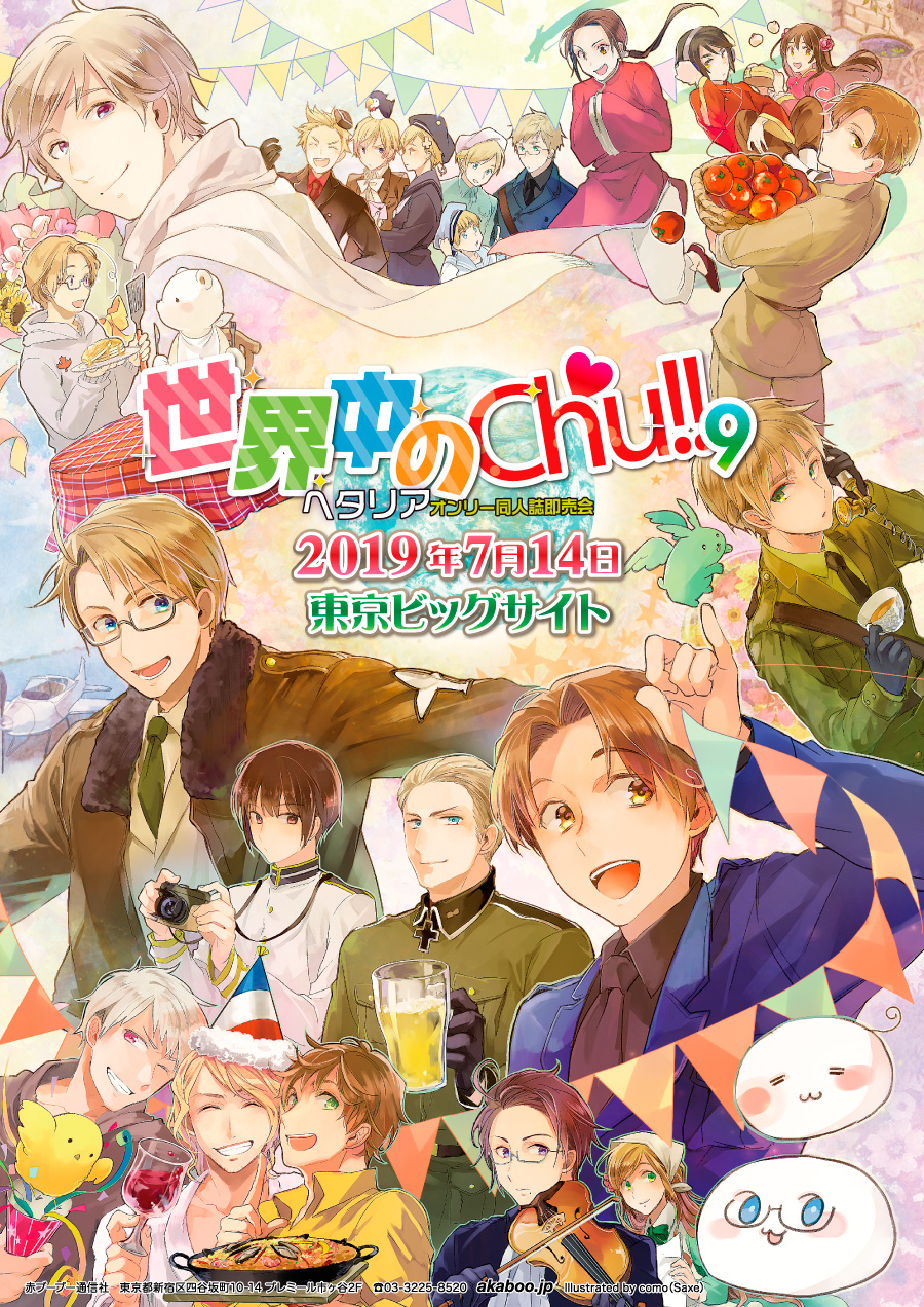 世界中のChu!! 9を切っ掛けとして参加者皆さんの手による、アンソロジーの発行はもちろん、プチオンリーまでいかなくても・・・ラリー企画の呼びかけや、共通POPの配布、共通ロゴの呼びかけ、お宝マップ配布など様々なアイデアで世界中のChu!! 9を一層彩っていただければ幸いです!!