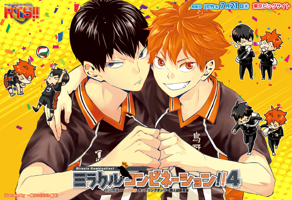 RTS!! 25内「ミラコン」開催決定!!「ミラクルコンビネーション!! 4」はRTS!! 25内で開催される影山×日向カププチオンリーです。 親イベント:RTS!! 25 開催情報プチ参加表明前に親イベントへのサークル参加手続きをお済ませください。 |
