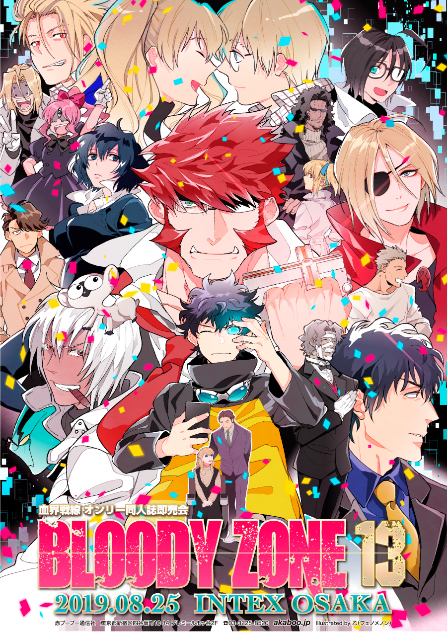 BLOODY ZONE 13を切っ掛けとして参加者皆さんの手による、アンソロジーの発行はもちろん、プチオンリーまでいかなくても・・・ラリー企画の呼びかけや、共通POPの配布、共通ロゴの呼びかけ、お宝マップ配布など様々なアイデアでBLOODY ZONE 13を一層彩っていただければ幸いです!!
