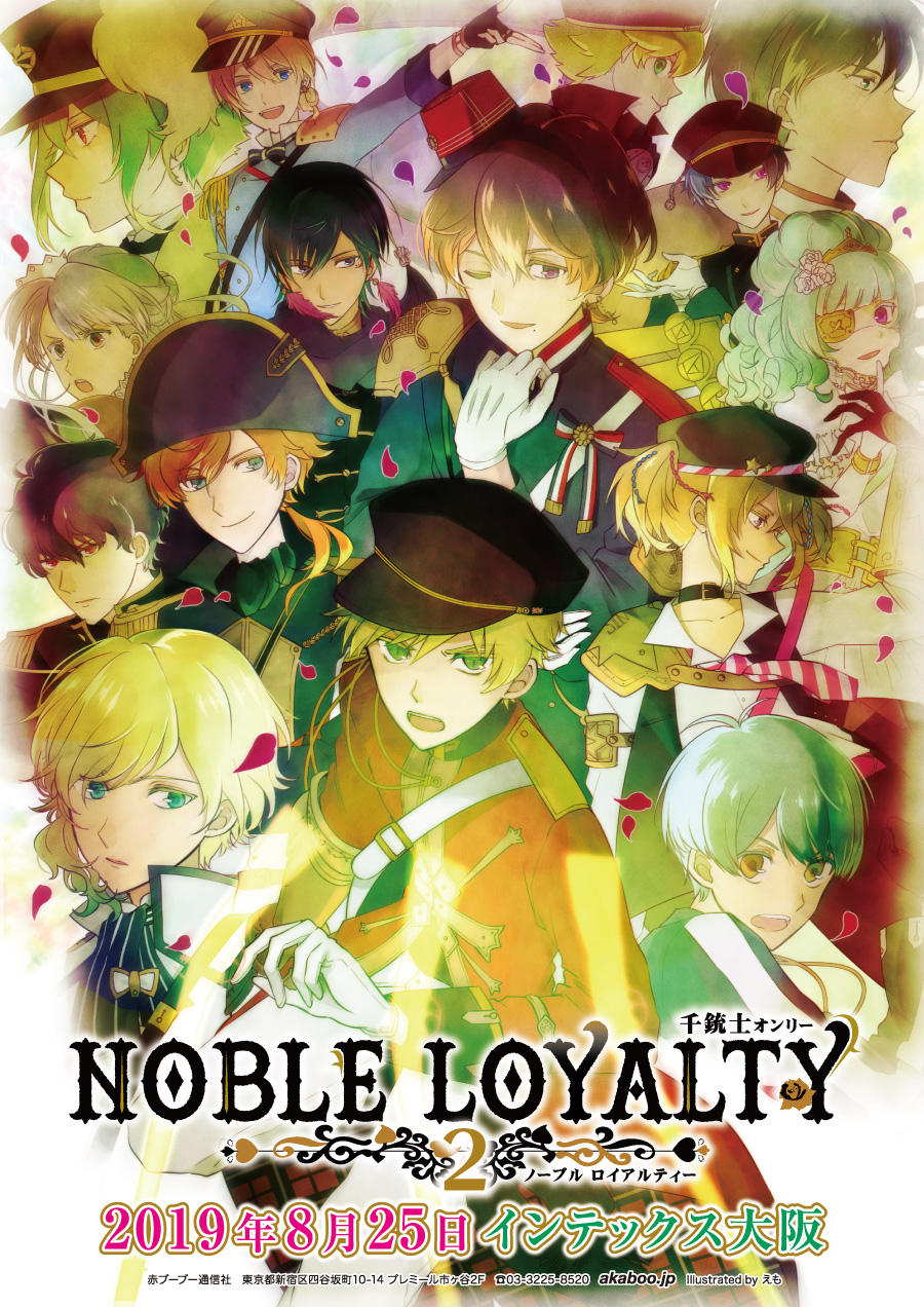 NOBLE LOYALTY 2を切っ掛けとして参加者皆さんの手による、アンソロジーの発行はもちろん、プチオンリーまでいかなくても・・・ラリー企画の呼びかけや、共通POPの配布、共通ロゴの呼びかけ、お宝マップ配布など様々なアイデアでNOBLE LOYALTY 2を一層彩っていただければ幸いです!!