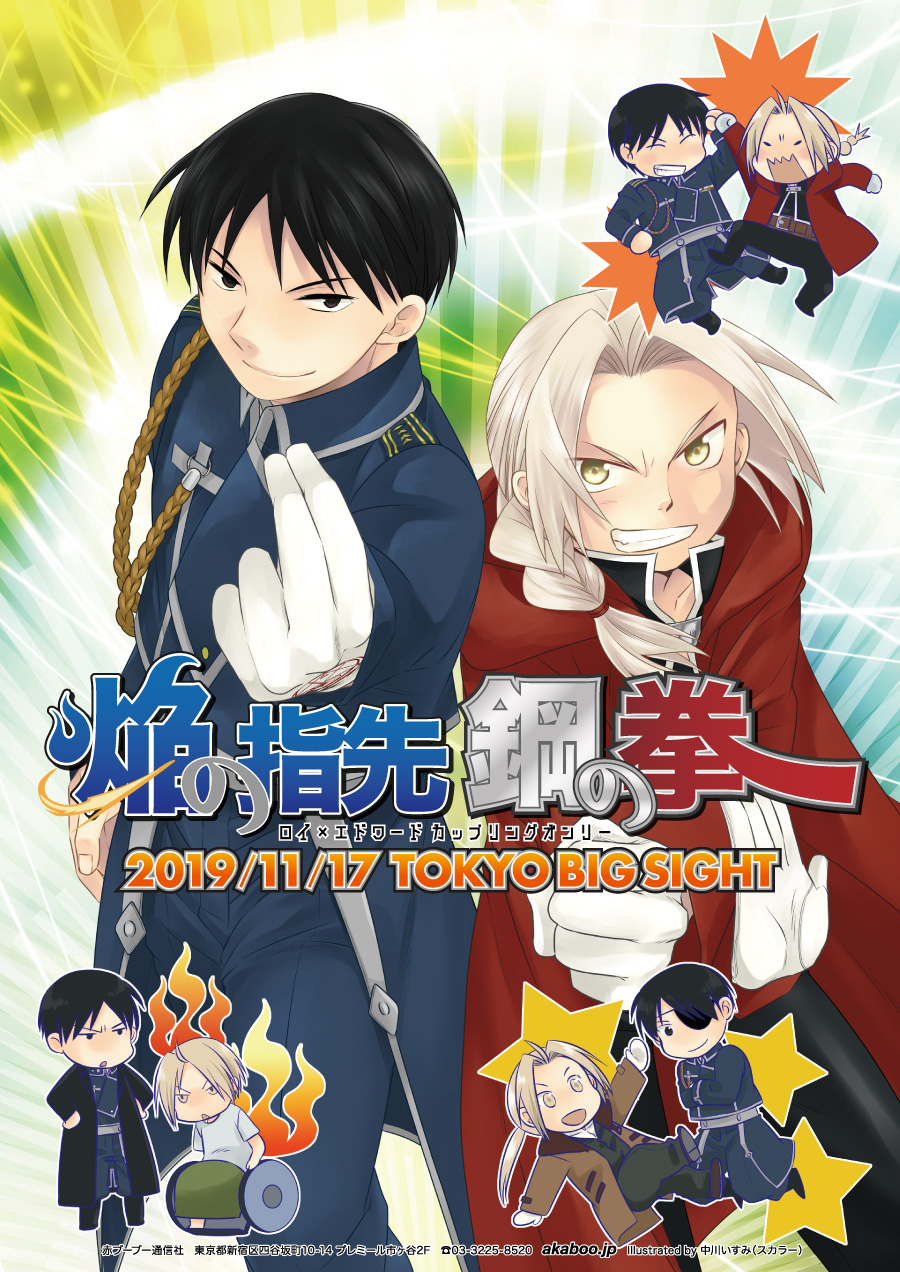 マスタング×エドワード・エルリック カップリングオンリー 同人誌即売会と同時開催することで、手作り創作をはじめ、おしゃれ小物・雑貨・ファッションなどに関心のある女性を中心とした多くの方が来場いたします。あなたの力作を手に取ってもらえる大きな機会となるでしょう。 ※パロディー系(二次創作)雑貨中心でのご参加はできません。ご注意下さい。
