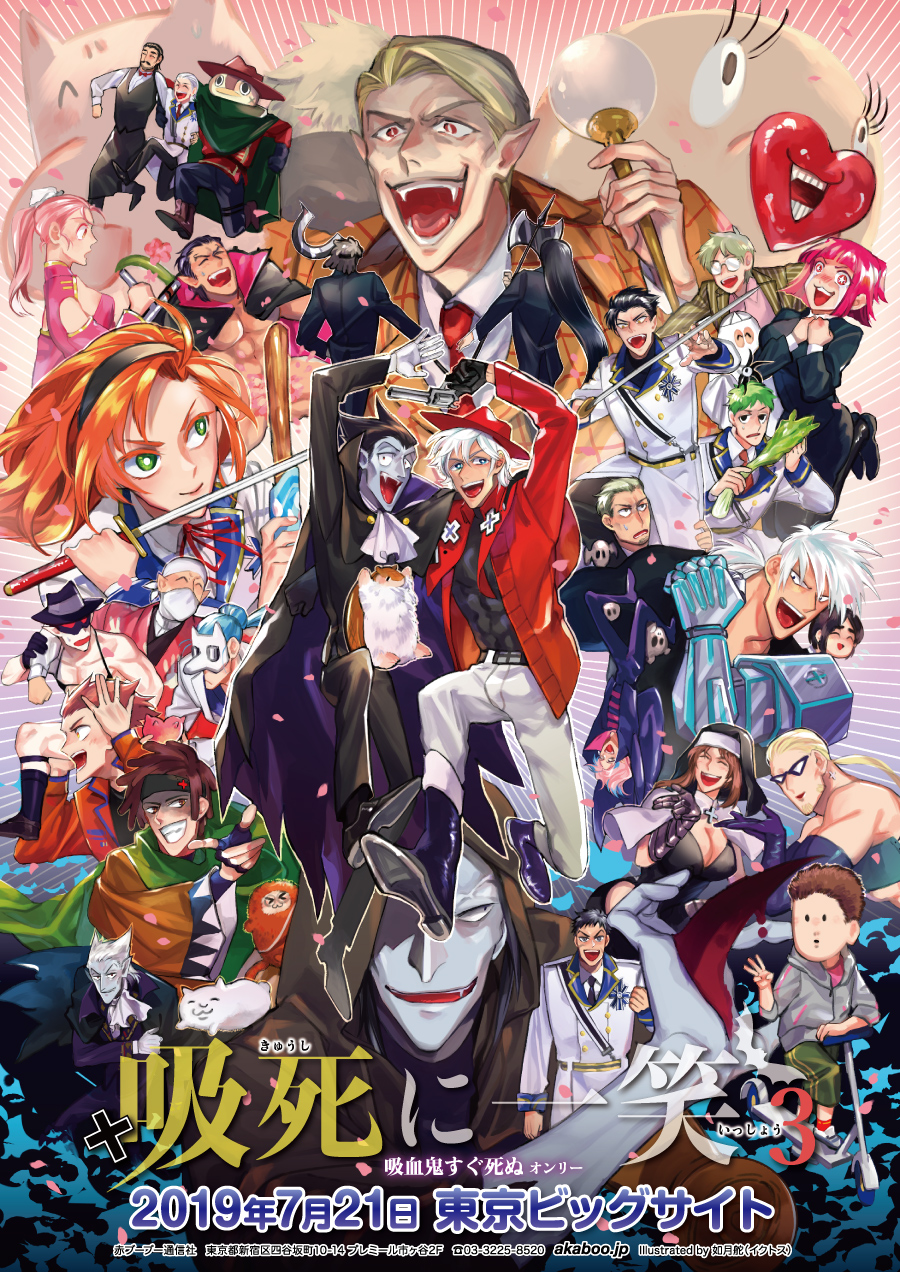 吸死に一笑 3を切っ掛けとして参加者皆さんの手による、アンソロジーの発行はもちろん、プチオンリーまでいかなくても・・・ラリー企画の呼びかけや、共通POPの配布、共通ロゴの呼びかけ、お宝マップ配布など様々なアイデアで吸死に一笑 3を一層彩っていただければ幸いです!!