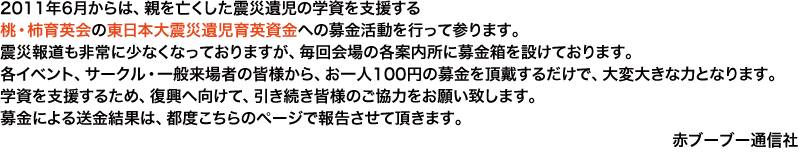 震災遺児の学資募金を募っております。【2011年6月開催イベントより】