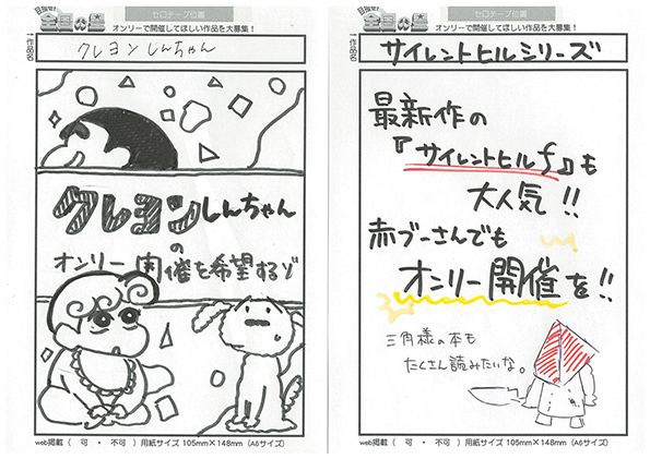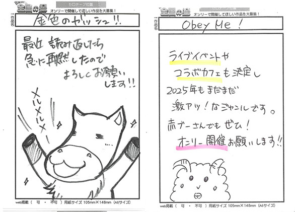 アイ★チュウ/UNDERTALE/英雄伝説 軌跡シリーズ/SDガンダムワールドシリーズ/押忍!番長/学園ヘヴン/金返せ!お前ら!/キン肉マン/狂い月/サムライトルーパー/GIANT KILLING/進撃の巨人/天国大魔境/刀剣乱舞/咎狗の血/TRIBE NINE/忍者と極道/ハイスクール!奇面組/パラノマサイト FILE23 本所七不思議/HANDEAD ANTHEM/プリティーシリーズ/変な家/僕のヒーローアカデミア/ミリオンダラーボーイズ/ラッキードッグ1(五十音順) |