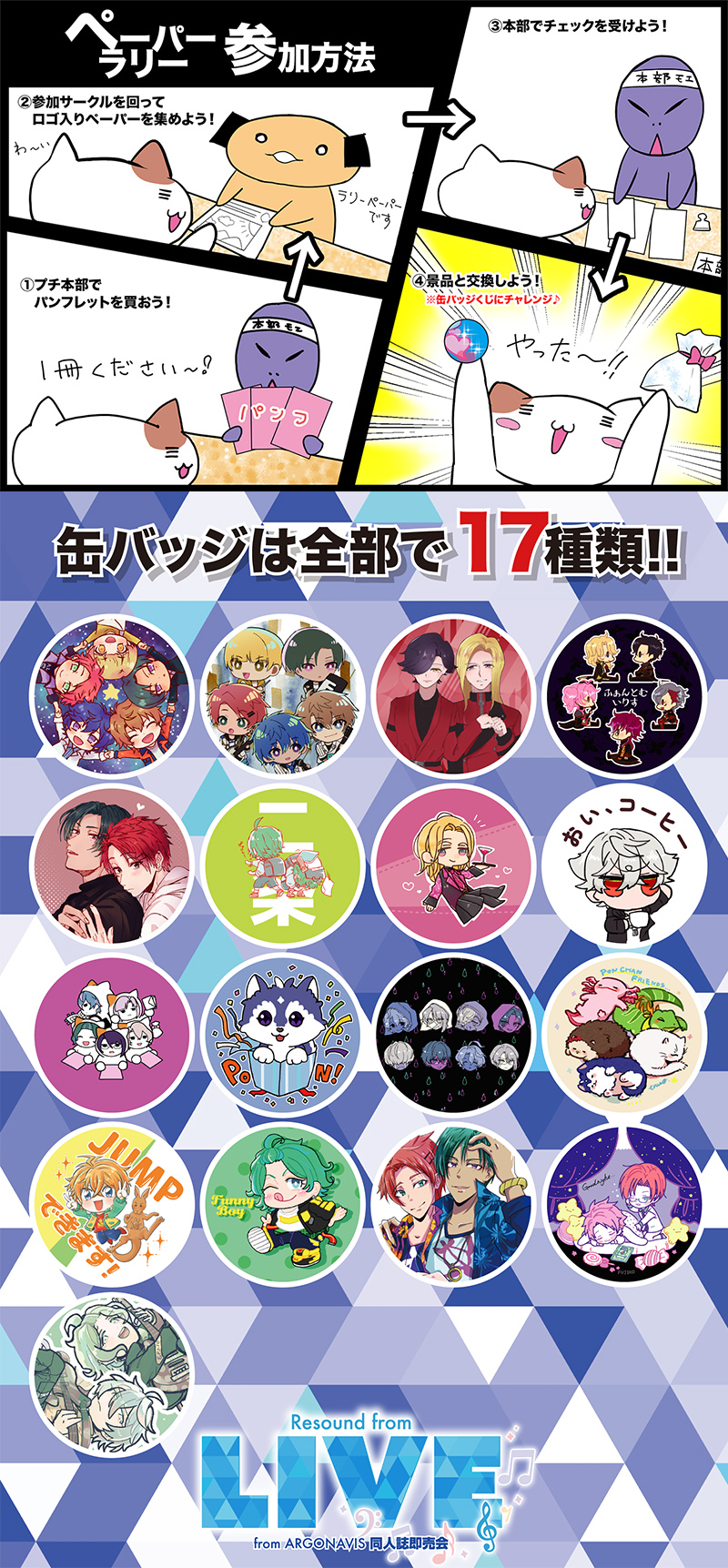 備考欄に「Resound from LIVE」とプチオンリー名をご記入ください。必須ではありませんが、記入するとプチオンリー参加者が近くに配置されやすくなります。(必ずしも隣接になるとは限りません)