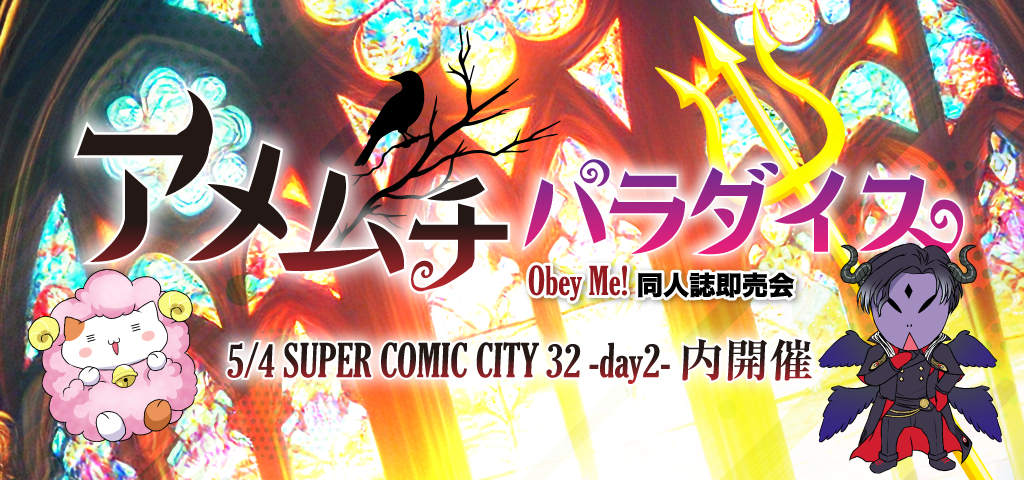 | 東7 H10a | ★ | デイドリームサン | あすた、同居人 | マモン×男留学生、マモン夢、 ベルゼブブ×個性あり留学生 |