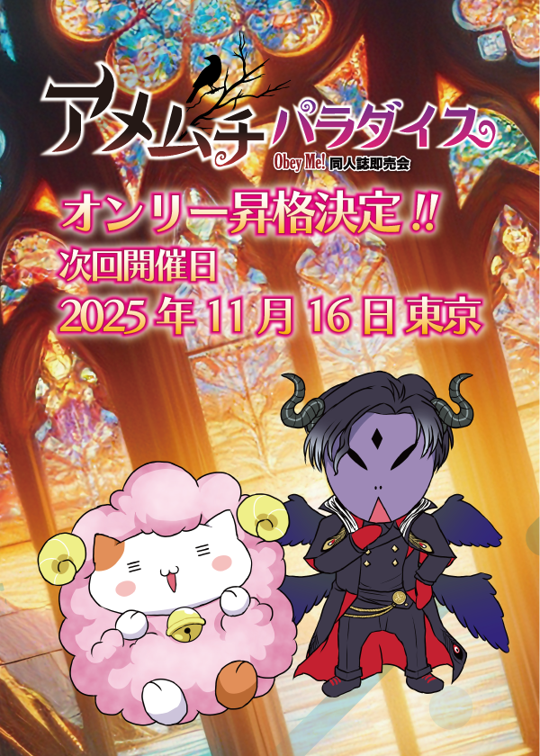備考欄に「アメムチパラダイス」とプチオンリー名をご記入ください。必須ではありませんが、記入するとプチオンリー参加者が近くに配置されやすくなります。(必ずしも隣接になるとは限りません)